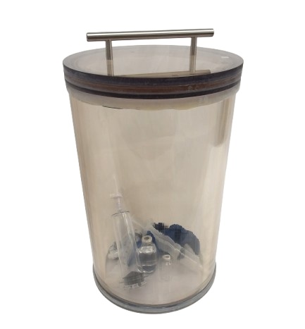 Our mobile transparent shielded waste container shields Gammas emitted during inpatient radiotherapy. Urine bags and other types of liquid holders with tubing can be placed inside the shielded container with the lid closed.